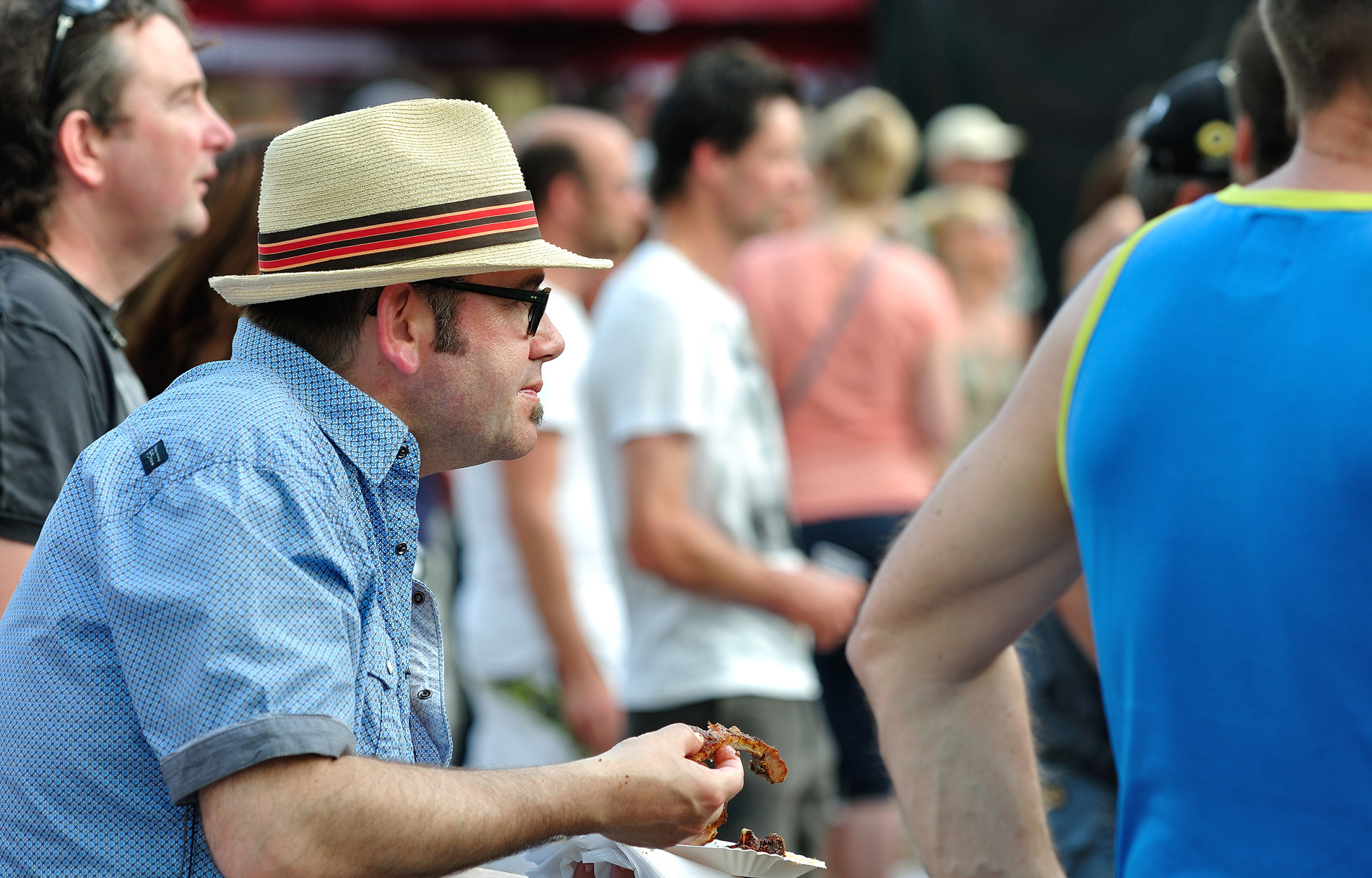 Deze meneer was aan het genieten van de blues en was een sparerib aan het eten , Ribs & Blues festival 2013