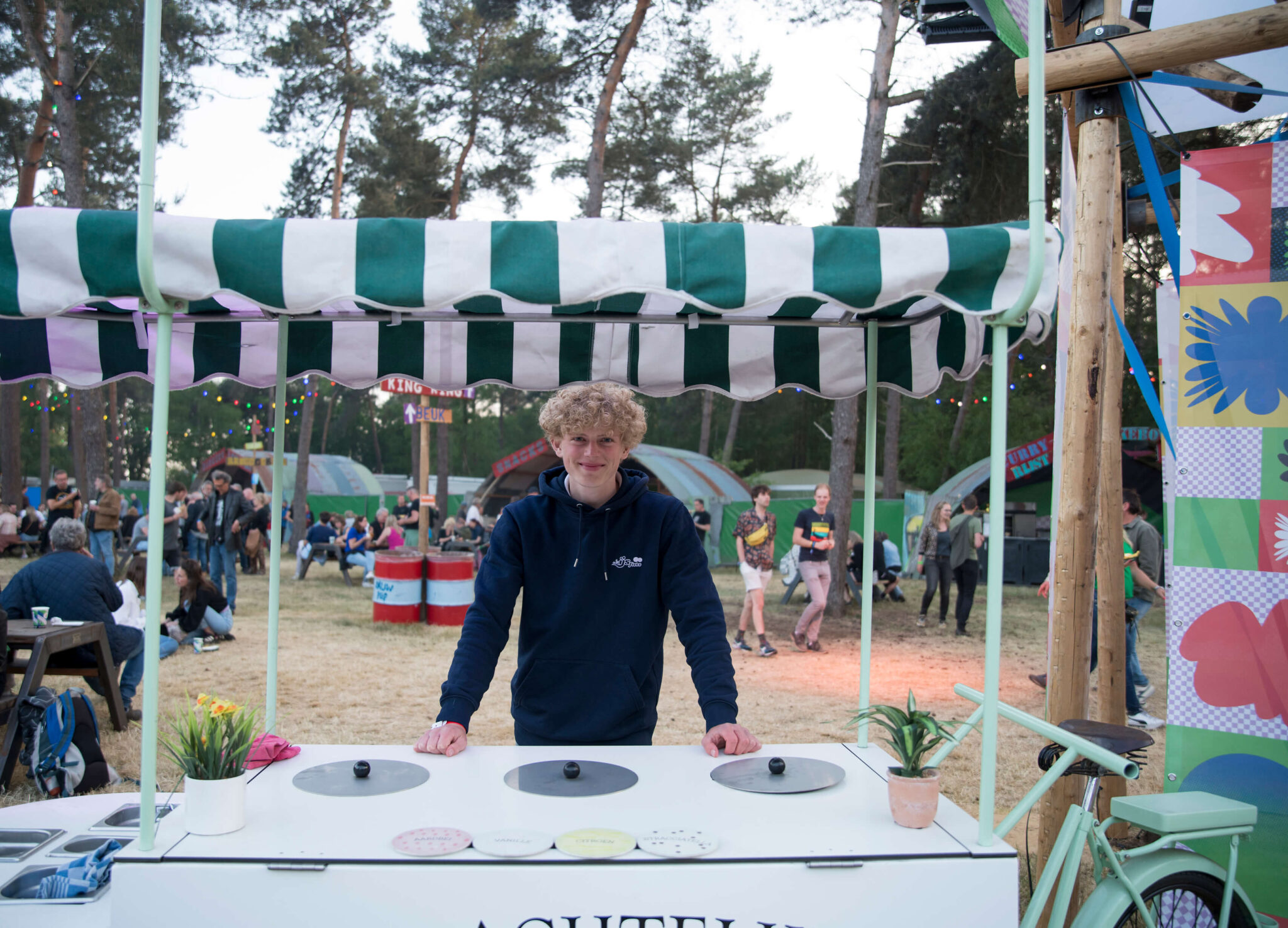Dauwpop 2023, die jongen met het blauwe shirtje stond al acht uur en nog altijd goed te pas.